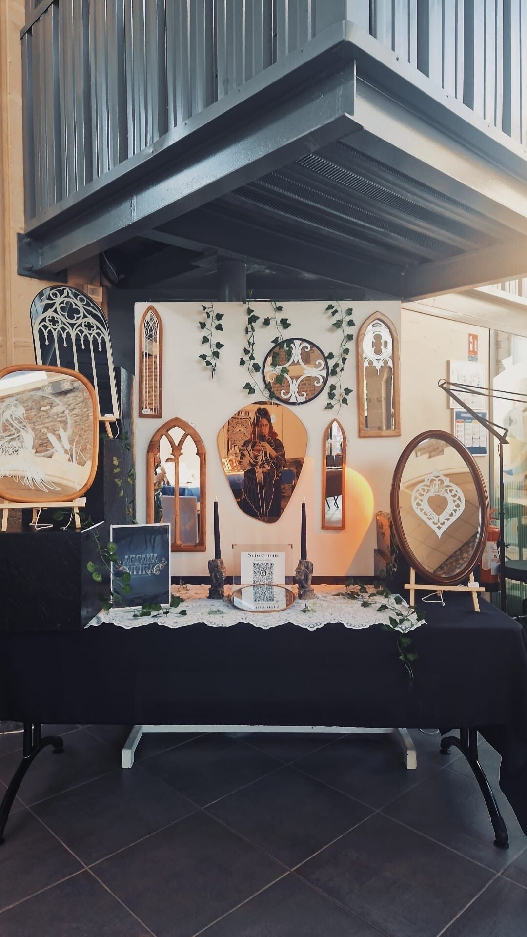 Vous avez une vision unique ? Arcana Vitra est spécialisée dans la création de pièces sur mesure. Qu'il s'agisse d'un miroir pour votre intérieur ou d'un objet d'art personnalisé, nous travaillons en étroite collaboration avec vous pour concevoir une œuvre qui reflète parfaitement vos désirs et s'intègre harmonieusement à votre environnement. Découvrez notre processus de création, de l'esquisse à la pose.